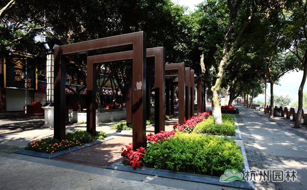 該工程起于濱江路孝順路口,止于國(guó)窖長(zhǎng)江大橋,是瀘州市“兩江四岸”規(guī)劃建設(shè)的示范性工程。工程的設(shè)計(jì)不僅體現(xiàn)出了自然與生態(tài)融于一體的園林理念,注重對(duì)原生態(tài)環(huán)境的保護(hù),節(jié)能環(huán)保材料的應(yīng)用及后期養(yǎng)護(hù)的簡(jiǎn)單方便等,更重要的,將瀘州深厚的歷史文化元素融入其中,讓人們?cè)谛蕾p現(xiàn)代美景的同時(shí),可以穿過(guò)歷史的塵煙,記住這座城市的一路變遷,品味時(shí)光的流轉(zhuǎn)。一處地標(biāo)式的城市景觀,將“醉美瀘州”展現(xiàn)得琳漓盡致。