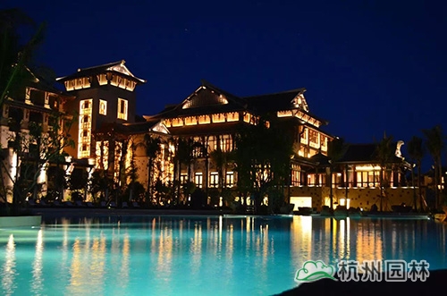 豪華的建筑,璀燦的燈光,彰顯恢弘氣勢;站在臺階上遠望椰林怡人,沙灘泳池宛如碧藍的藍寶石。