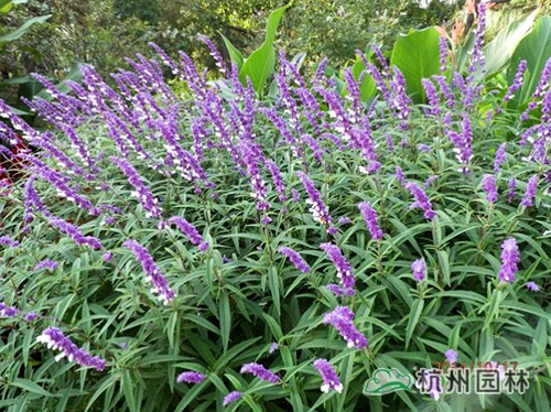紫絨鼠尾草,莖直立,株高100~160厘米,花期9月上、中旬至霜降。該種適應(yīng)性強(qiáng),花期遲,栽培容易,繁殖容易,是一種適合推廣的花境植物。需肥量較其它鼠尾草大,需多施基肥。