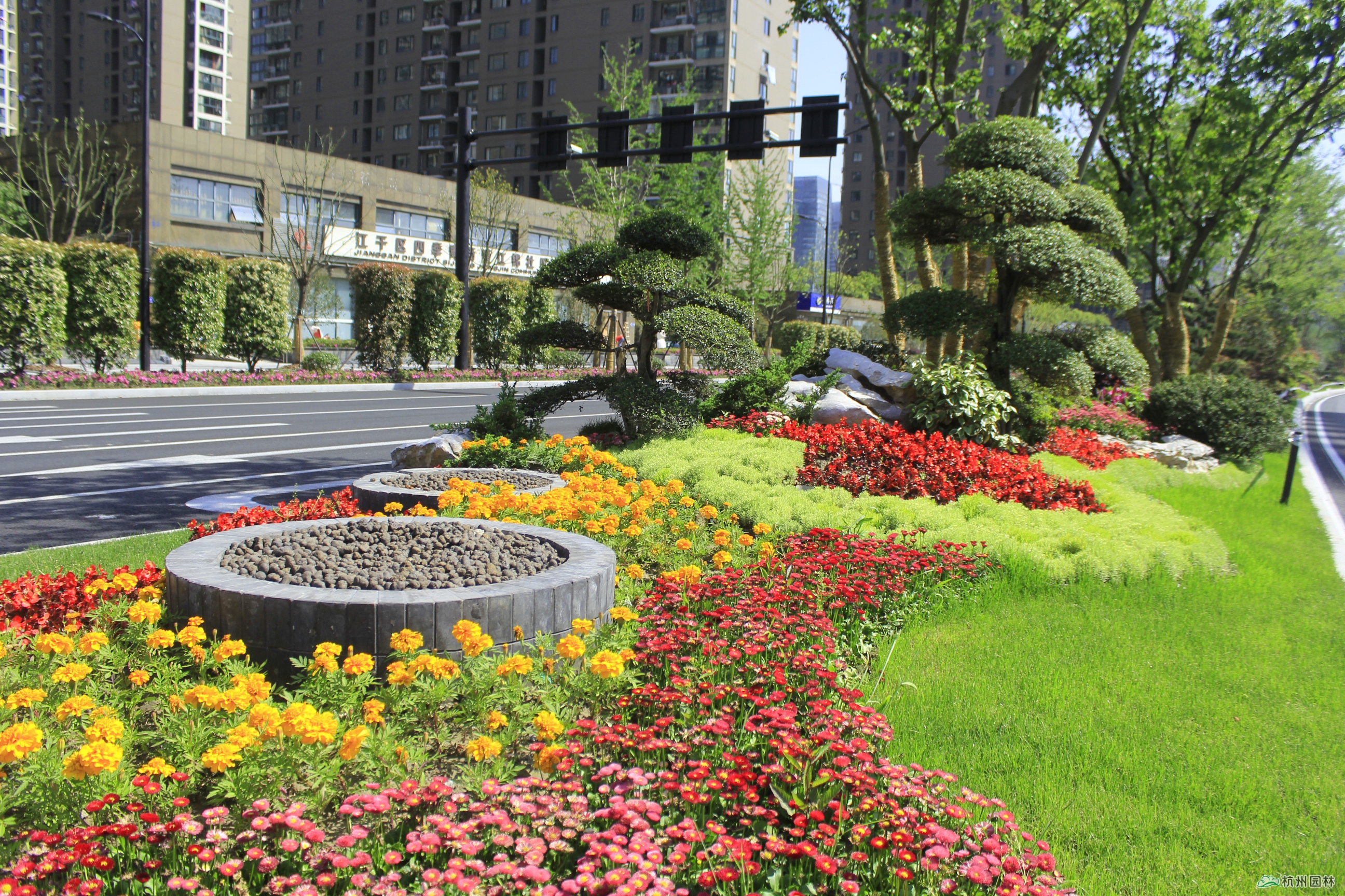 在道路十字路口及一些重要節(jié)點(diǎn),則通過(guò)造型樹(shù)、球類(lèi)植物、景石等的有機(jī)結(jié)合,采用盆景化的造園手法,景觀效果獨(dú)具特色。從而使得新塘路成為四季常綠、三季彩葉、全年花開(kāi)不斷的“最美”迎賓大道。